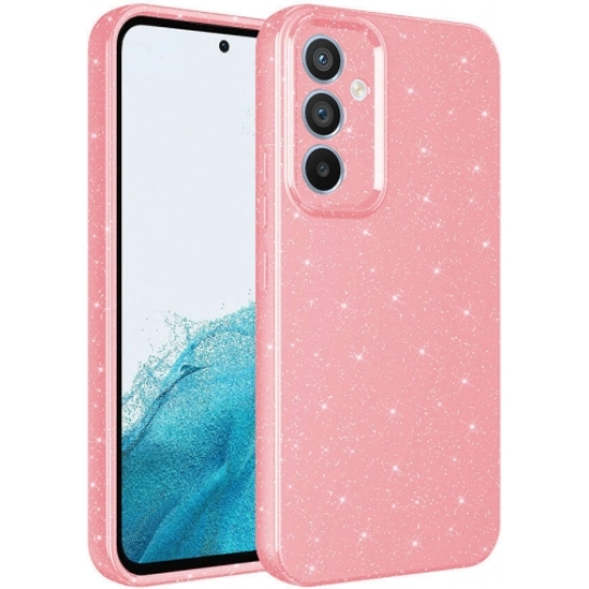 Samsung Galaxy S24 Plus Kılıf Kamera Korumalı Simli Parlak Lüks Silikon Koton Kapak - Pembe