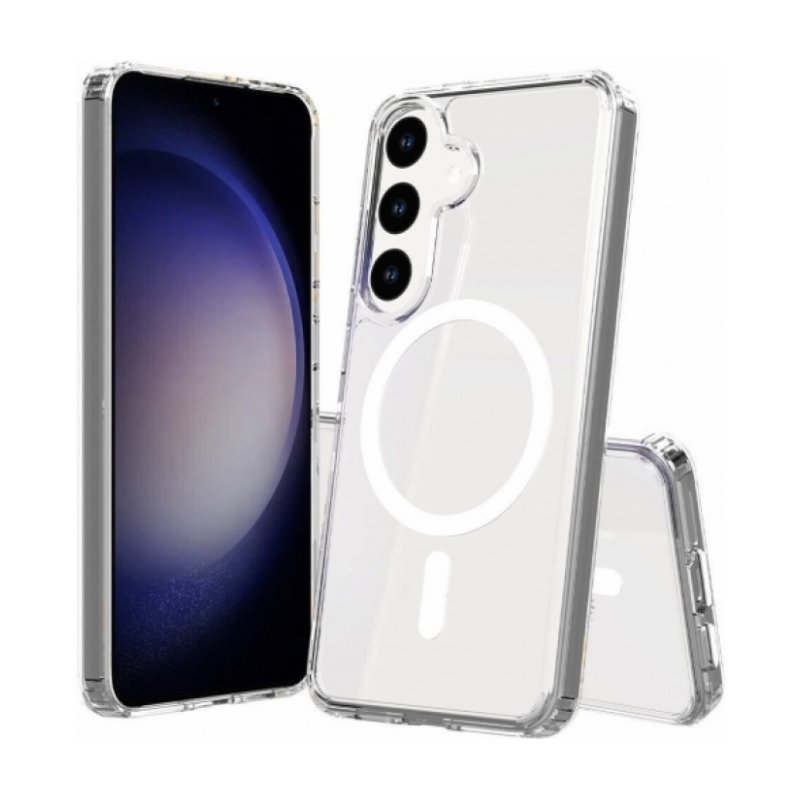 Samsung Galaxy S24 Plus Kılıf Magsafe Şarj Özellikli Şeffaf Sert PC Embos Kapak - Şeffaf