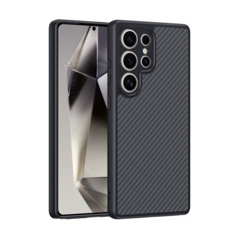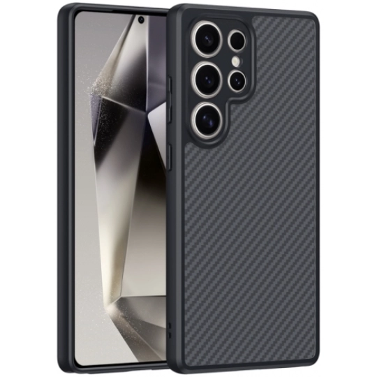 Samsung Galaxy S25 Ultra Kılıf Magsafe Şarj Özellikli Karbon Fiber Tasarımlı Zore Elnino Kapak - Siyah