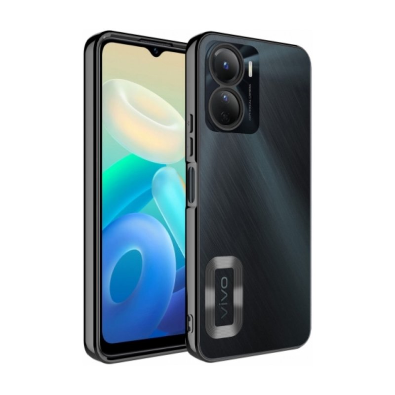 Vivo Y16 Kılıf Kamera Lens Korumalı Şeffaf Renkli Logo Gösteren Parlak Kapak - Siyah