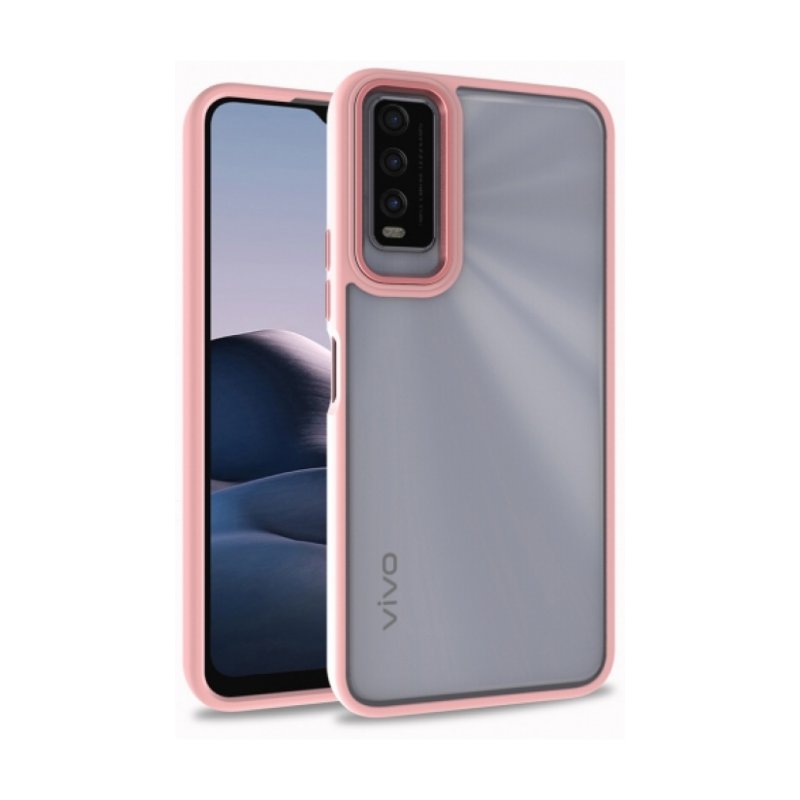 Vivo Y20s Kılıf Electro Silikon Renkli Flora Kapak - Rose Gold