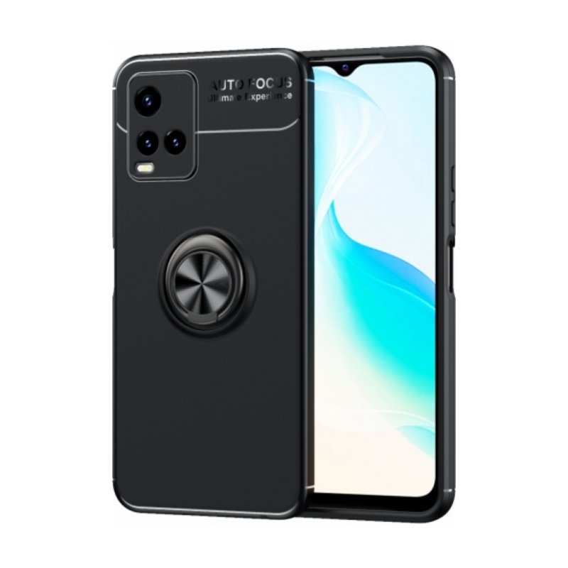 Vivo Y32 Kılıf Renkli Silikon Yüzüklü Standlı Auto Focus Ravel Kapak - Siyah