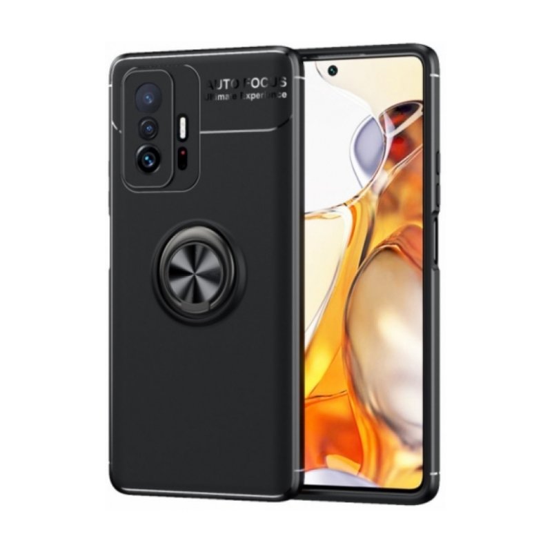 Xiaomi Mi 11T Kılıf Renkli Silikon Yüzüklü Standlı Auto Focus Ravel Kapak - Siyah