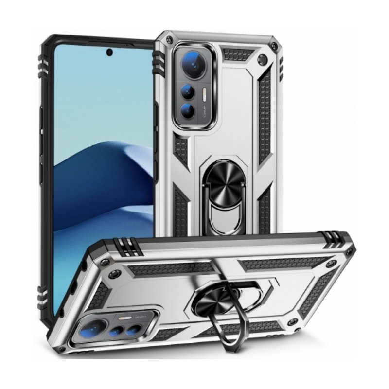 Xiaomi Mi 12 Lite Kılıf Silikon Zırhlı Standlı Yüzüklü Mıknatıslı Tank Kapak - Gümüş