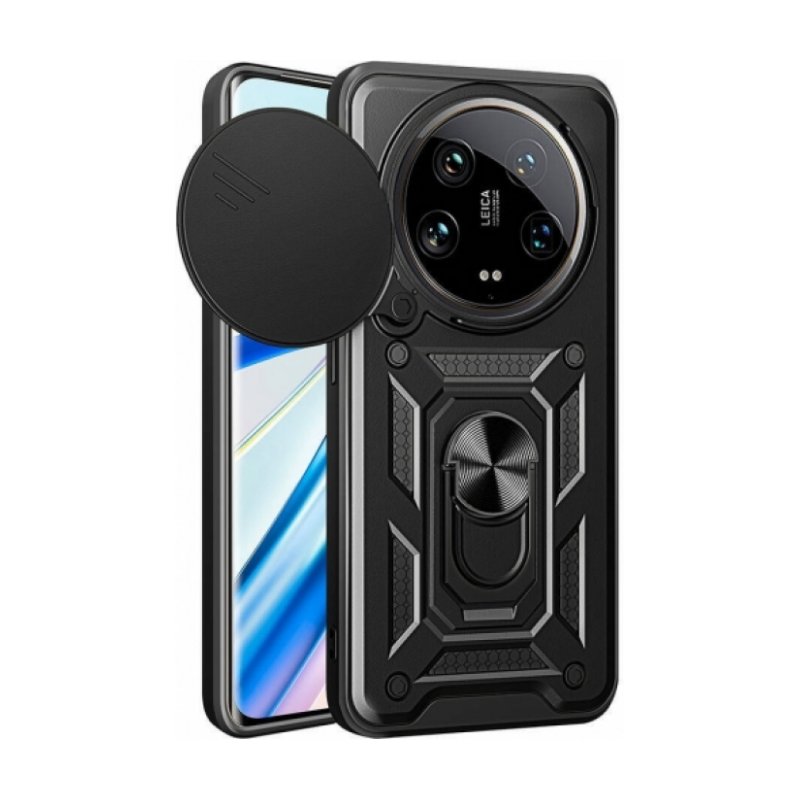 Xiaomi Mi 14 Ultra Kılıf Zırhlı Standlı Silikon Sürgülü Kamera Korumalı Tank Kapak - Siyah