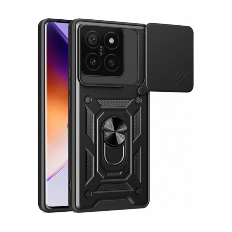 Xiaomi Mi 14T Kılıf Zırhlı Standlı Silikon Sürgülü Kamera Korumalı Tank Kapak - Siyah