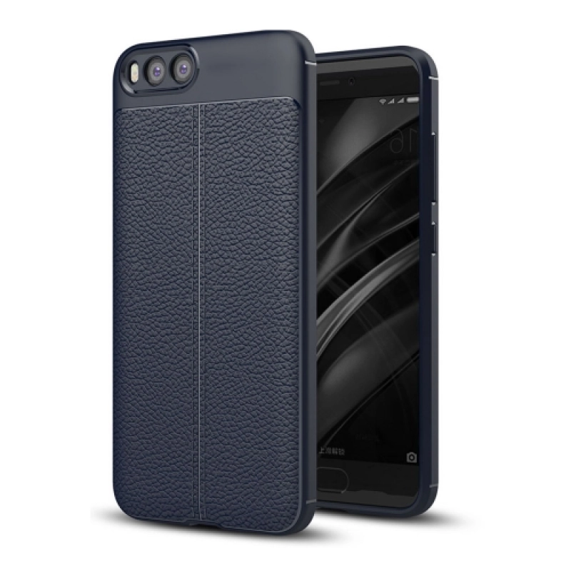 Xiaomi Mi 6 Kılıf Deri Görünümlü Lüks Parmak İzi Bırakmaz Niss Silikon Kapak - Lacivert