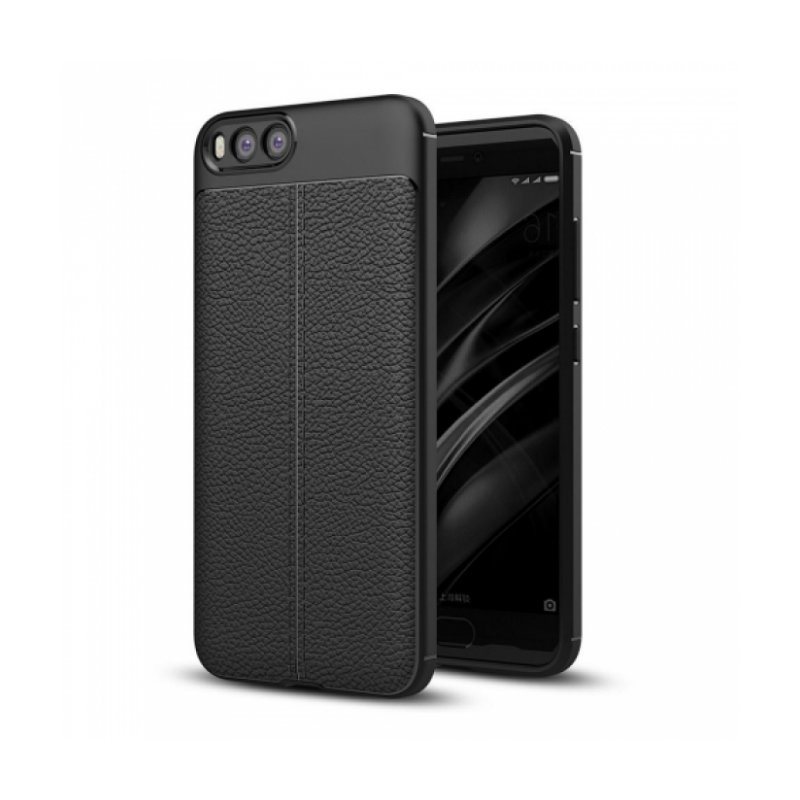 Xiaomi Mi 6 Kılıf Deri Görünümlü Lüks Parmak İzi Bırakmaz Niss Silikon Kapak - Siyah