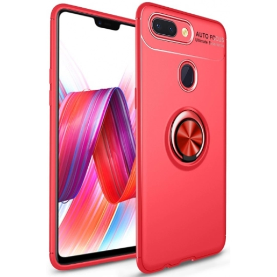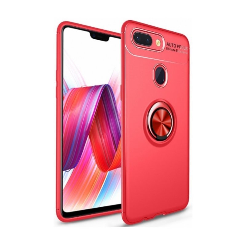 Xiaomi Mi 8 Lite Kılıf Renkli Silikon Yüzüklü Standlı Auto Focus Ravel Kapak - Kırmızı