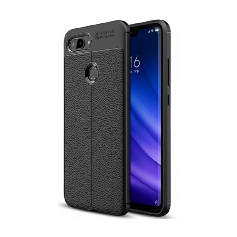 Xiaomi Mi 8 Lite Kılıf Deri Görünümlü Lüks Parmak İzi Bırakmaz Niss Silikon Kapak - Siyah