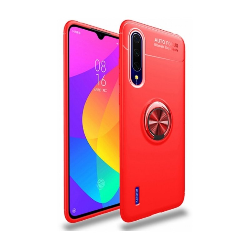 Xiaomi Mi 9 Lite Kılıf Renkli Silikon Yüzüklü Standlı Auto Focus Ravel Kapak - Kırmızı