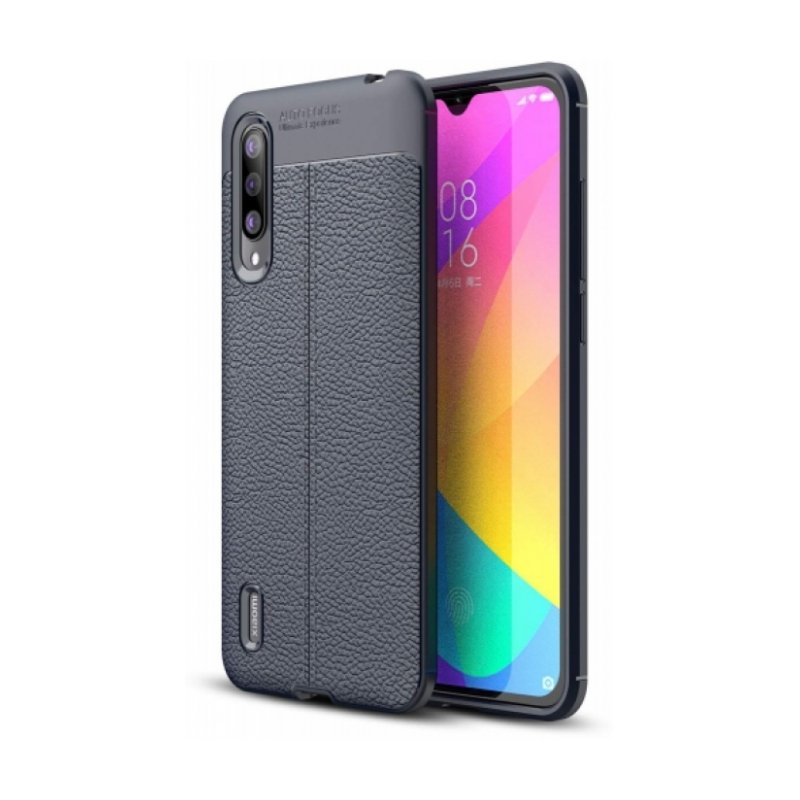 Xiaomi Mi 9 Lite Kılıf Deri Görünümlü Lüks Parmak İzi Bırakmaz Niss Silikon Kapak - Lacivert
