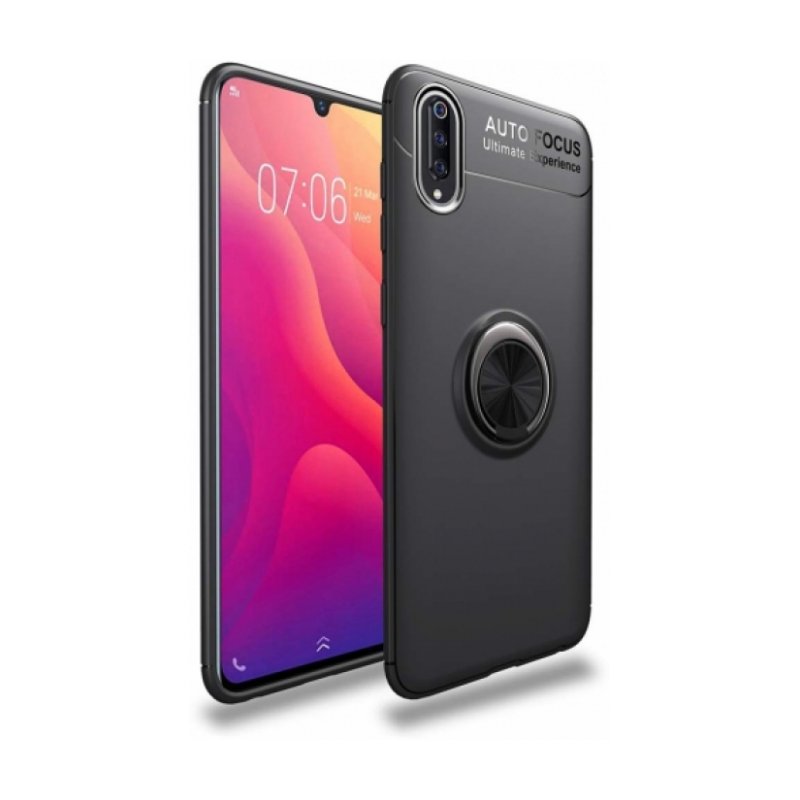 Xiaomi Mi 9 SE Kılıf Renkli Silikon Yüzüklü Standlı Auto Focus Ravel Kapak - Siyah