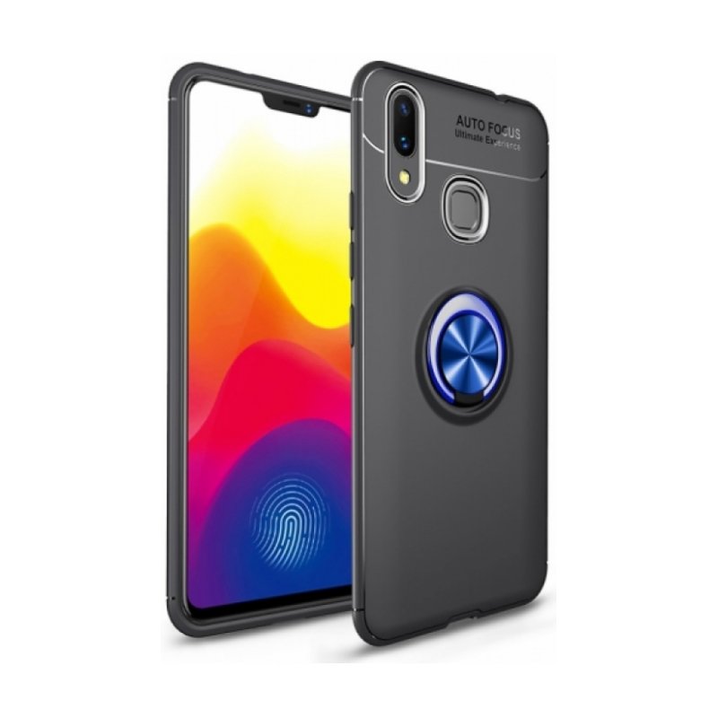 Xiaomi Mi Max 3 Kılıf Renkli Silikon Yüzüklü Standlı Auto Focus Ravel Kapak - Mavi - Siyah
