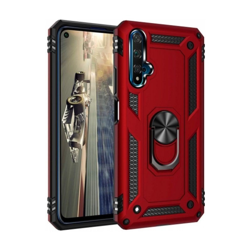 Xiaomi Mi Note 10 Kılıf Silikon Zırhlı Standlı Yüzüklü Mıknatıslı Tank Kapak - Kırmızı