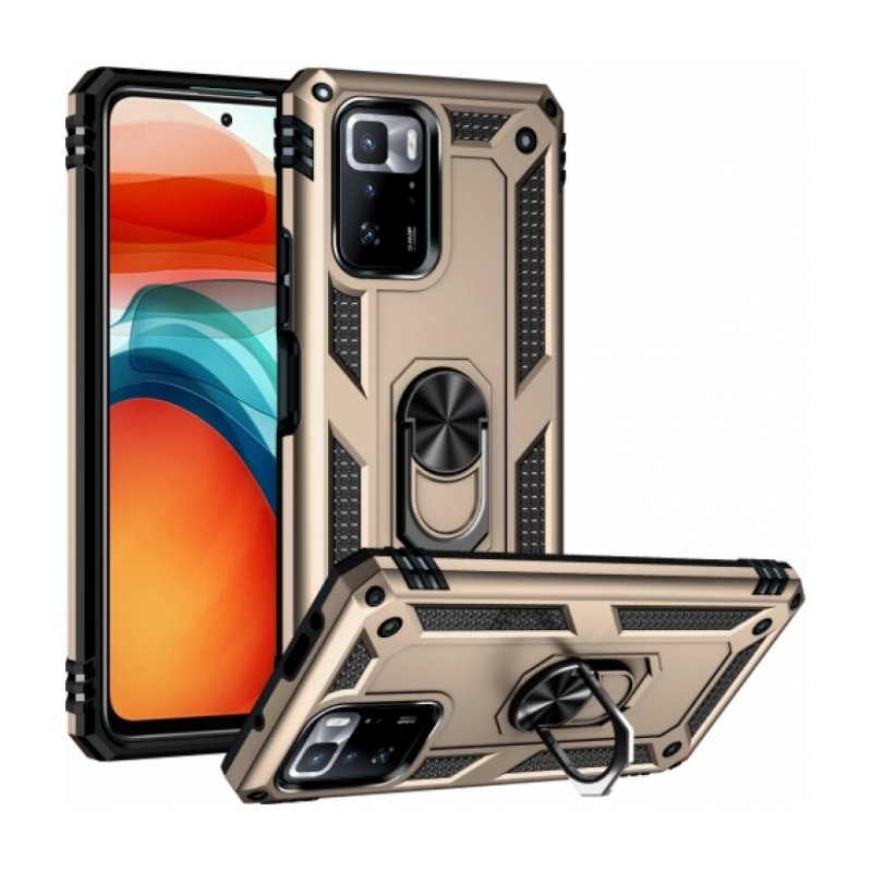 Xiaomi Poco X3 GT Kılıf Silikon Zırhlı Standlı Yüzüklü Mıknatıslı Tank Kapak - Gold