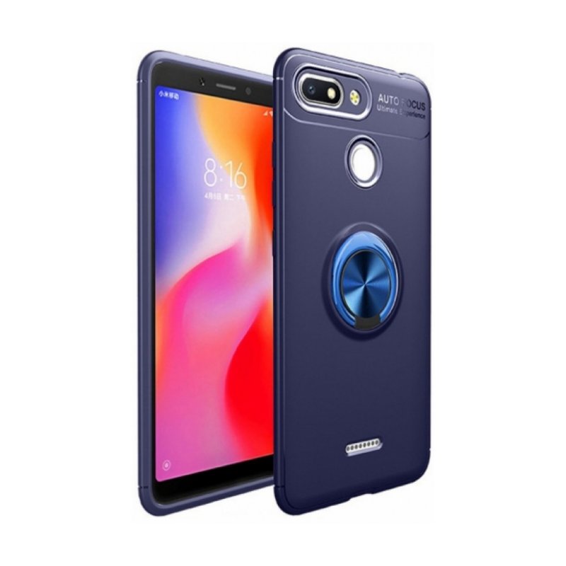 Xiaomi Redmi 6A Kılıf Renkli Silikon Yüzüklü Standlı Auto Focus Ravel Kapak - Mavi