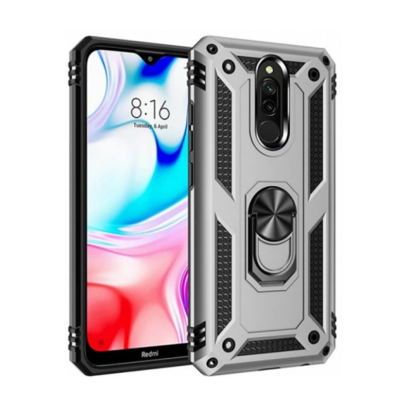 Xiaomi Redmi 8A Kılıf Silikon Zırhlı Standlı Yüzüklü Mıknatıslı Tank Kapak - Gri