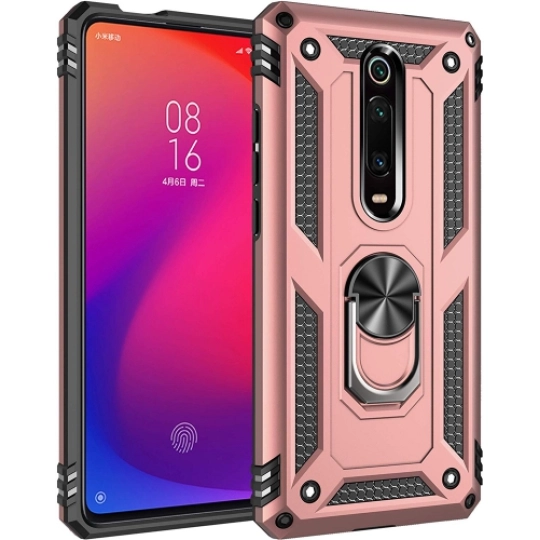 Xiaomi Redmi K20 Kılıf Silikon Zırhlı Standlı Yüzüklü Mıknatıslı Tank Kapak - Rose Gold