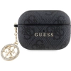 Apple Airpods Pro 2 Kılıf Guess Orjinal Lisanslı 4G Desenli Taşlı 4G Süs Zincirli Kapak - Siyah