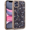 Apple iPhone 11 Kılıf Taşlı ve Simli Tasarım Lux Işıltılı Azra Kapak - Siyah