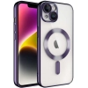 Apple iPhone 14 (6.1) Kılıf Kamera Korumalı Şeffaf Magsafe Wireless Şarj Özellikli Demre Kapak - Gümüş