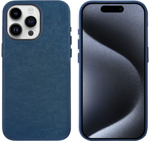 Apple iPhone 15 Pro Kılıf Zore PU Suni Deri Mimoza Kapak - Mavi
