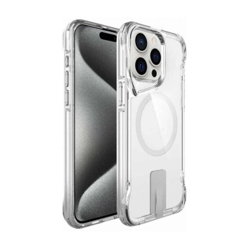 Apple iPhone 15 Pro Max (6.7) Kılıf MagSafe Özellikli Standlı TPU Kenarları Esnek T-Max Kapak - Şeffaf