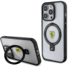 Apple iPhone 15 Pro Max (6.7) Kılıf Ferrari Magsafe Şarj Özellikli Standlı Buzlu Yüzey Dizayn Kapak - Transparan Siyah