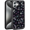 Apple iPhone 16 (6.1) Kılıf Taşlı ve Simli Tasarım Lux Işıltılı Azra Kapak - Pembe