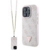 Apple iPhone 16 Pro (6.3) Kılıf Guess Orjinal Lisanslı PU Deri Taşlı Metal Üçgen Logolu Çapraz Vücut Askılı 4G Desenli Kapak - Pembe