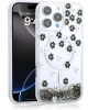 Apple iPhone 16 Pro (6.3) Kılıf Sıvılı Simli Baskılı Şeffaf Arka Yüzey Zore Mossa Silikon Kapak - Gri