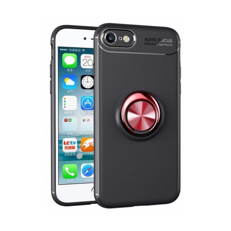 Apple iPhone 6 Plus / 6s Plus Kılıf Renkli Silikon Yüzüklü Standlı Auto Focus Ravel Kapak - Siyah - Gold