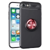 Apple iPhone SE 2 (2020) Kılıf Renkli Silikon Yüzüklü Standlı Auto Focus Ravel Kapak - Kırmızı - Siyah