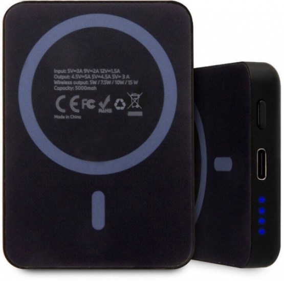 BMW Led Işıklı Göstergeli Magsafe Magnetik Orjinal Lisanslı Powerbank 5000 Mah - Siyah