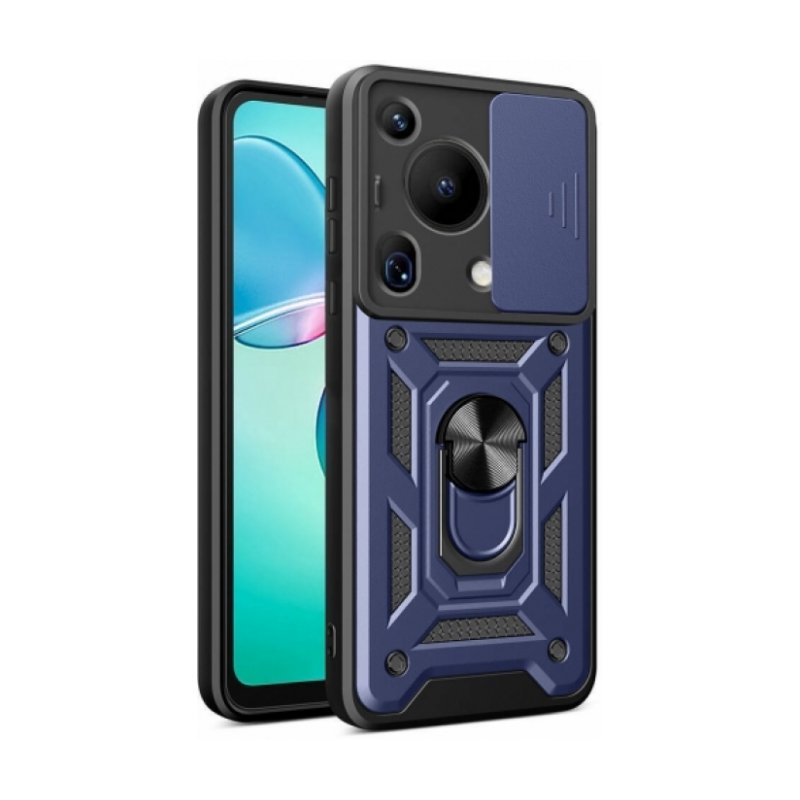 Huawei Pura 70 Ultra Kılıf Zırhlı Standlı Silikon Sürgülü Kamera Korumalı Tank Kapak - Mavi