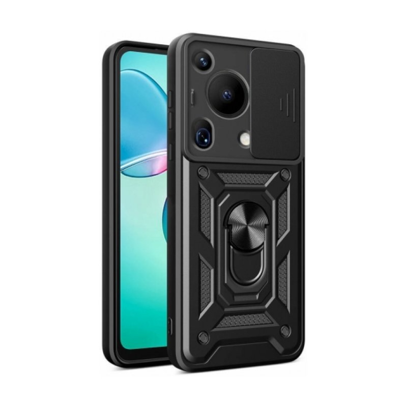 Huawei Pura 70 Ultra Kılıf Zırhlı Standlı Silikon Sürgülü Kamera Korumalı Tank Kapak - Siyah