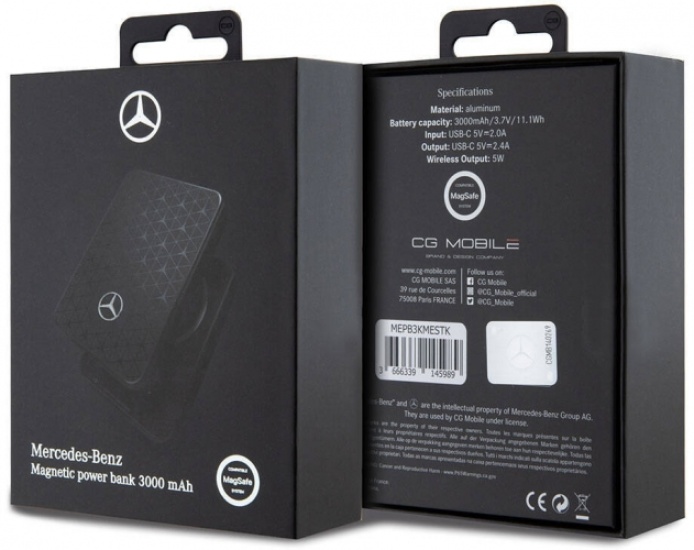 Mercedes Benz Led Işıklı Göstergeli Magsafe Magnetik Orjinal Lisanslı Powerbank 3000 Mah - Siyah