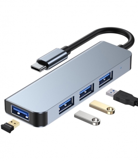 Newface Type-C To 4 Portlu USB 3.0 Çoklayıcı Adaptör HUB - Gri