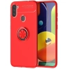 Samsung Galaxy M11 Kılıf Renkli Silikon Yüzüklü Standlı Auto Focus Ravel Kapak - Siyah