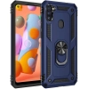 Samsung Galaxy M11 Kılıf Silikon Zırhlı Standlı Yüzüklü Mıknatıslı Tank Kapak - Siyah