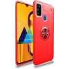 Samsung Galaxy M30s Kılıf Renkli Silikon Yüzüklü Standlı Auto Focus Ravel Kapak - Mavi - Siyah