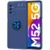 Samsung Galaxy M52 Kılıf Renkli Silikon Yüzüklü Standlı Auto Focus Ravel Kapak - Mavi - Siyah