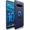 Samsung Galaxy S10e Kılıf Renkli Silikon Yüzüklü Standlı Auto Focus Ravel Kapak - Kırmızı - Siyah