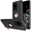 Samsung Galaxy S20 Ultra Kılıf Renkli Silikon Yüzüklü Standlı Auto Focus Ravel Kapak - Mavi - Siyah