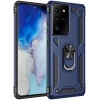 Samsung Galaxy S21 Ultra Kılıf Silikon Zırhlı Standlı Yüzüklü Mıknatıslı Tank Kapak - Gümüş