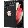 Samsung Galaxy S22 Ultra Kılıf Renkli Silikon Yüzüklü Standlı Auto Focus Ravel Kapak - Mavi