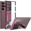 Samsung Galaxy S23 Ultra Kılıf Kamera Korumalı Şeffaf Tasarımlı Lego Standlı Kapak - Gümüş