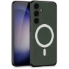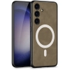 Samsung Galaxy S24 Kılıf Magsafe Şarj Özellikli Deri Tasarımlı Kıpta Nubuk Kapak - Gri