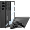 Samsung Galaxy S24 Ultra Kılıf Kamera Korumalı Şeffaf Tasarımlı Lego Standlı Kapak - Yeşil
